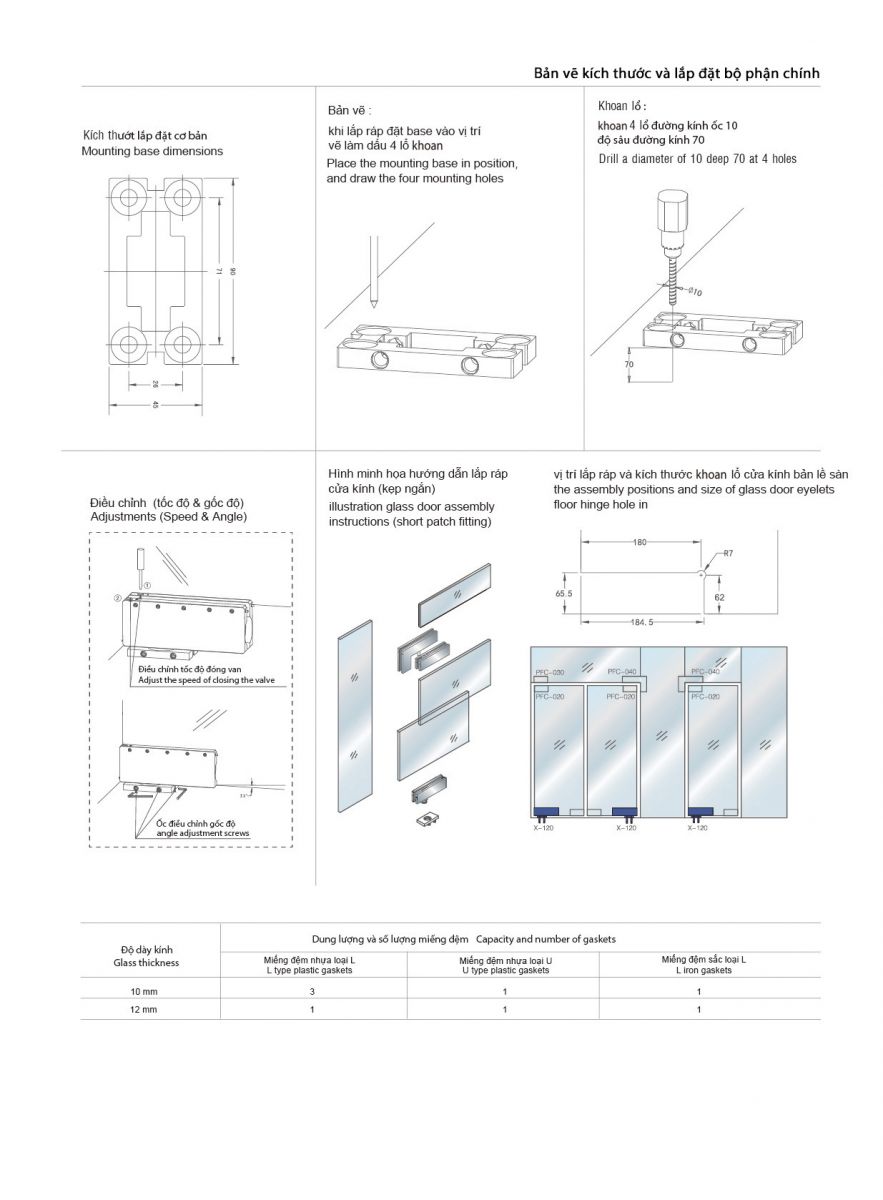 - Bản lề sàn GMT X-120 sử dụng cho cửa có chiều ngang từ 1100mm