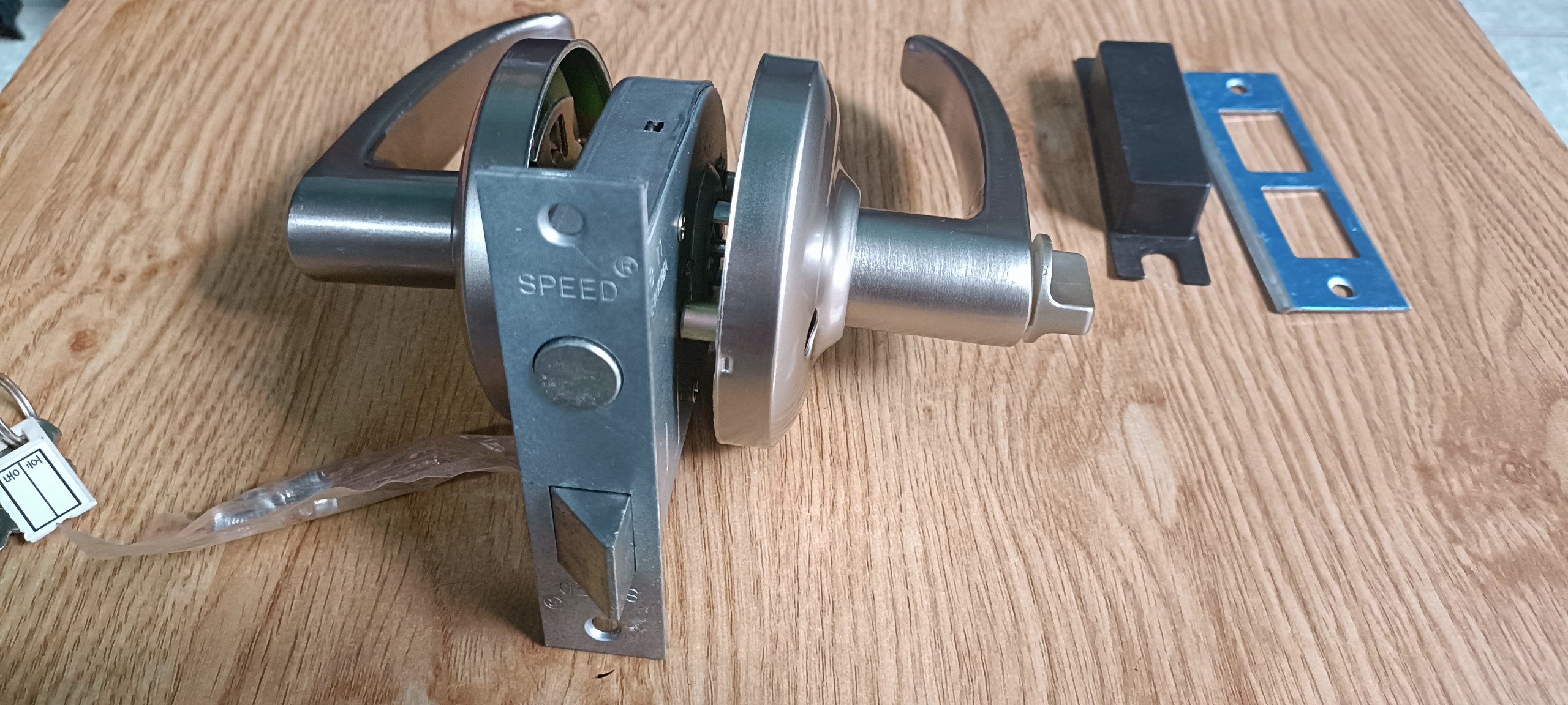 Khóa tròn gạt SPEED 9000SHL là sản phẩm được nhập khẩu 100% từ Hàn Quốc. Khóa tròn gạt Hàn Quốc mã 9000SHL là sản phẩm đặc trưng dùng cho cửa chống cháy. Được sản xuất từ inox 304 chống hoen rỉ bền đẹp. Khóa tròn gạt hiệu SPEED 9000SHL là mẫu sản phẩm được thiết kế tay nắm tròn sử dụng thân khóa hình bán nguyệt sử dụng 1 đầu chìa 1 đầu vặn.