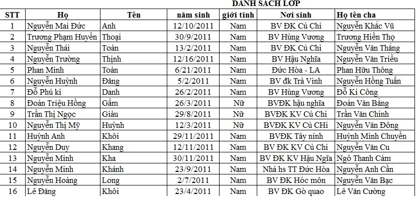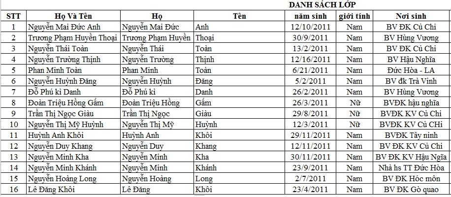 Bước 5: Bây giờ ta Xóa cột Họ và tên.và sẽ có kết quả như hình sau: