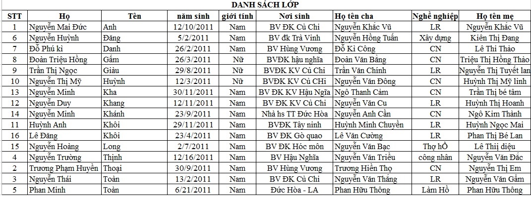 Đến đây coi như công việc sắp hoàn thành rồi, Chỉ cần kéo cột, gộp ô, kéo lại cột STT và xóa các đường kẻ ô ở cột họ và tên cho đẹp là được và mình tin rằng các bạn có thể làm được điều này. Có gì thắc mắc xin liên hệ mình nhé. Nếu bạn thấy bài viết hay và bổ ích thì hãy chia sẻ cho mọi người cùng làm nhé. Chúc các bạn thành công !