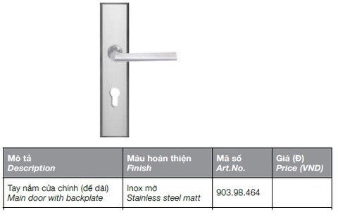 + Khóa tay gạt inox 304 Hafele 903.98.473 gồm: 2 tay gạt + 2 ốp tròn + một trục bẻ + 1 bộ vít.