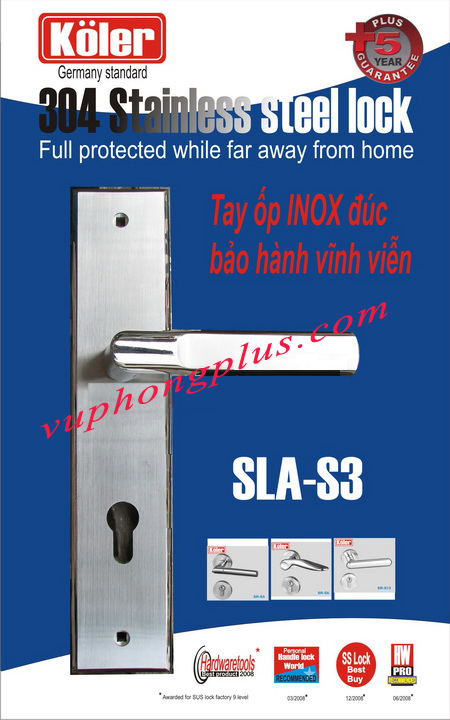 Khóa Tay Gạt Koler SLA-S3 trắng mờ bóng sử dụng tay ốp INOX 304 đúc nóng chảy (Bảo hành vĩnh viễn đối với tay ốp khóa, bảo hành 05 năm cho toàn bộ sản phẩm). Sản phẩm độc quyền tại Việt Nam. Khóa Tay Gạt Koler SLA-S3 được đúc nguyên khối từ chất liệu INOX 304. Thừa hưởng công nghệ đánh bóng và chế tác vỏ và giây đồng hồ, tay ốp khóa Inox 304 của Koler đạt được độ tinh xảo hoàn hảo đem lại các mẫu thiết kế mang tính đột phá, đẳng cấp hàng đầu. Sản phẩm khóa Koler liên tục 5 năm lọt vào top 10 các sản phẩm khóa theo đánh giá của Hiệp hội kim khí Koln " Koln hardware Association "