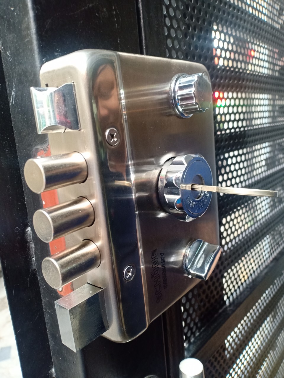 Câu chuyện kể về hành trình lắp khoá cổng sắt cho anh khách tên Hoàng Nam trên con hẻm đường Bình Thới, Phường 10, Quận 11, TP. Hồ Chí Minh. Sau khi tiếp nhận được cuộc gọi của anh Hoàng Nam cần lắp cho cửa cổng nhà mình 1 bộ khoá cổng cửa sắt vì nhà bị khoá móc trong khi gia đình đi vắng cũng may cửa chính vào nhà được gia đình anh lắp khoá chống trộm nên không thiệt hại gì cả. Hôm nhà bị trộm ghé thăm ấy. Anh được nhà hàng xóm khuyên nên lắp khoá cổng sắt dạng hộp, khó bị phá vì hộp khoá lắp phía trong nhà mở khoá được cả bên trong và bên ngoài. Việc nhìn từ ngoài vào không biết có người ở trong nhà hay không, việc khoá cửa bằng ở khoá móc treo truyền thống sẽ phát hiện ra người nhà đi vắng. Được hàng xóm giới thiệu anh về trên google tìm hiểu và chọn vào website Vuphongplus.com Anh Hoàng Nam đã chụp và gửi hình ảnh khoá cổng nhà hàng xóm gửi cho bên mình xem. Chuyện chẳng có gì đáng nói nhưng đó lại chính là sản phẩm khoá cổng SCHONE do chính thợ bên mình lắp cách đây tầm độ 2 tháng. Cũng như mọi khách hàng bên Vũ Phong được tiếp nhận đúng quy trình. Đáng nhẽ hôm đi lắp chỉ cần bạn kỹ thuật đi lắp 1 mình nhưng cuộc nói chuyện với Anh Hoàng Nam khiến cho bản thân mình có gì đó gần gũi và thân quen ngay từ lúc nói chuyện điện thoại thế là mình quyết định đi lắp khoá cùng với kỹ thuật bởi hôm nay mình cũng rảnh trong khi lâu lắm chưa lắp nên ngứa nghề. Sau chưa đầy 20 phút chúng tôi có mặt nhà anh Hoàng Nam, ra đón và mở cửa cho 2 anh em chúng tôi. Vẫn giọng nói thân quen và cách tiếp chuyện rất thân quen. Sau chưa đầy 15 phút thợ bên em đã lắp xong bộ khoá cổng hình chụp lắp khoá cổng thực tế: