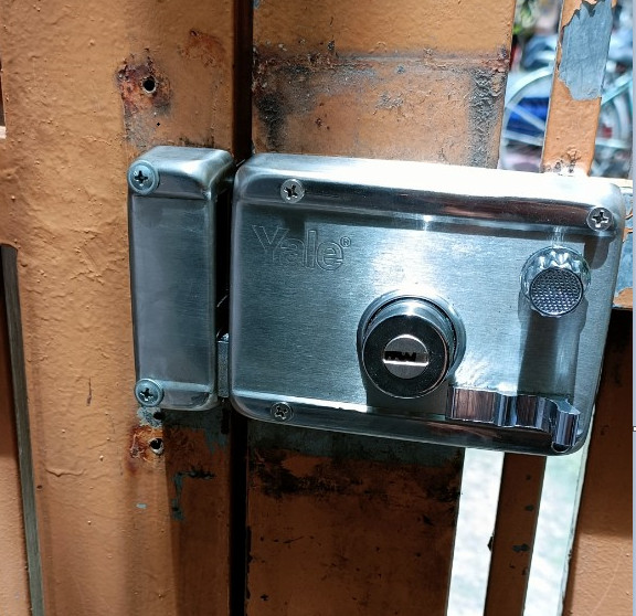 Bước 4: Nhân viên tiến hành lắp khoá cửa cổng hoàn thiện