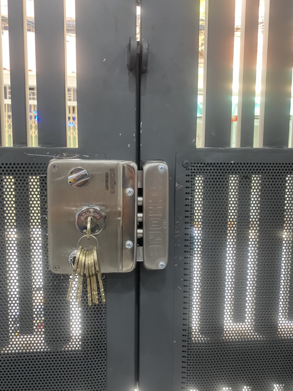 Hình ảnh lắp khoá cổng schone SC 2133 thực tế tại công trình: