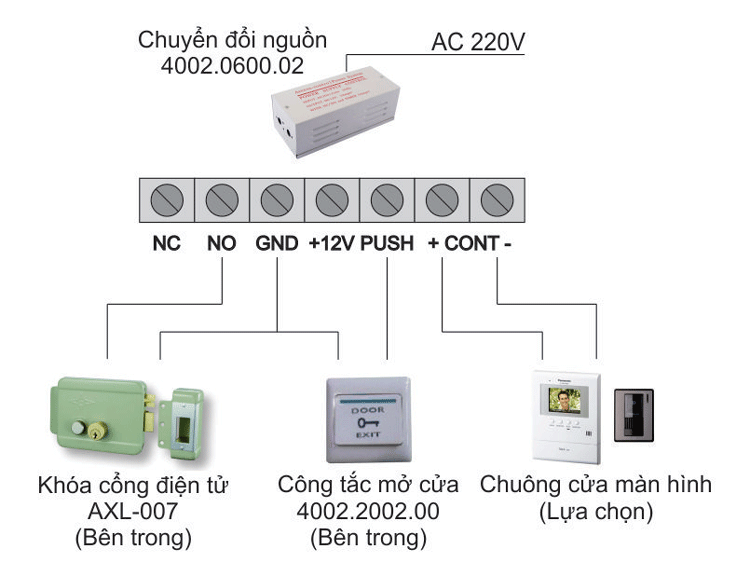 - Phù hợp kết nối với kiểm soát ra vào, Chuông cửa màn hình, cổng tự động